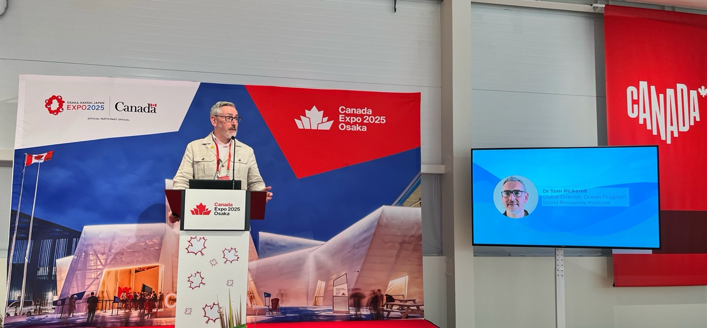Ông Tom Pickerell, Trưởng ban Thư ký, Ủy ban cấp cao Kinh tế biển bền vững (Ocean Panel) kiêm Giám đốc toàn cầu Chương trình Đại dương, Viện Tài nguyên Thế giới (WRI) phát biểu tại Hội nghị